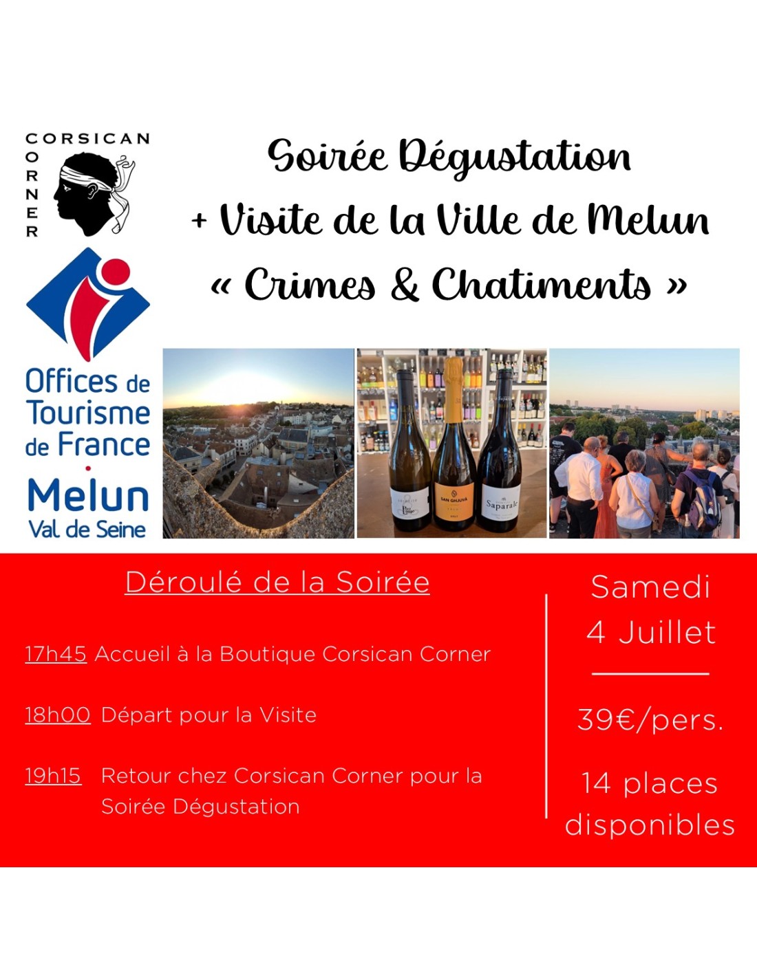 Au cours de cette délicieuse soirée, découvrez à la fois les saveurs de la Corse et les mystères de la ville de Melun !