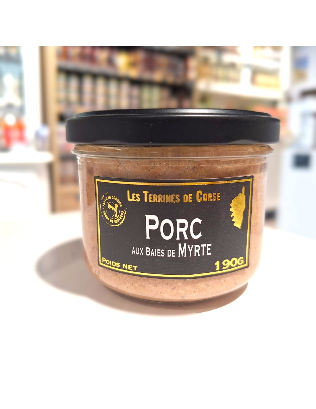 Le porc, véritable emblème de la Corse est associé aux baies de myrtes sauvages qui apportent à cette terrine un goût fruité se rapprochant du genièvre.